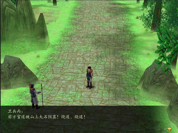 但是班长那个跳是永无止尽滴XD从旁边跳过后可向前走一段到这里就再过不去了。回头看调视角看这段路,模型尽头这扭曲的感觉...........不解释啊~关于这段路的推测,如图被拦住时给出的借口是————————————————————————卫兵丙:前方官道被山上大石阻塞!绕道、绕道!————————————————————————这说明这便是传说中的官道了。只是疑点是之前对话里已经有了————————————————————————韩菱纱:我说……县令大人,这马车看起来是不错,可要乘着它走官道,不知何年何月才到得了陈州啊……————————————————————————韩菱纱:咳、咳咳,其实我早想好了,我们这次取道淮南王陵地宫,顺利的话,要不了多久就能到陈州附近的碗丘山,比起走官道,那是大大的省事了。————————————————————————这样的理由,个人觉得,初次以"不是这个方向"二次以"走捷径不走官道"拦人是十分合情合理的。这样就算安排封了这地图上的一小节也是很正常的,不算残缺。退一步说,就算这官道不是剧情中提到的通向陈州的那条,这种情况下说"不是这个方向"也就足够了。(何况不是的话这段路就更有问题了)偏偏始终给出的理由是"大石阻塞"。真是额外的,不高明的借口....以此把这段归入残卷其中XD关于这段当然另外还有疑点,不过未有定论,归入第三部分再说。