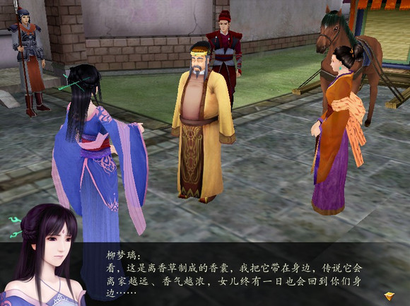 于是在妖界的离别戏,梦璃托付给天河这个香囊系统界面剧情物品而回到人界之后去柳府,得到门神的全对话,两次拦人的是右边的赵孟坚。左边的是卢莫石。————————————————————————————赵孟坚:此乃县令大人的府邸,若无拜帖,不能随意入内!赵孟坚:常有人听说我家小姐貌美,找尽理由要见上一面,他们也不看看自己的模样,个个都是纨绔子弟,哪里配得上小姐!赵孟坚:哎?云公子,你怎么来了?可是要找我家大人?大人和夫人一起进京了,一时半会应该回不来。————————————————————————————卢莫石:孟坚总想着县令府里的丫鬟禄蓉,那禄蓉长得也没禄翠漂亮,人也没禄翠大方,照我看,要娶就娶禄翠才好!卢莫石:柳大人和夫人如今都不在府里,据说是去京城办事了,唉,我什么时候也能去趟京里啊……————————————————————————————对话得知他们夫妇是去了京城。联系寿阳县衙的NPC得知现在的事务都由裴剑打理着。真是和谐的太平盛世啊~于是以此说中后期柳府的封闭。柳府夫妇外出合理(要不然不就可以探亲了这之于剧情推进就麻烦了呢),但就算柳大人出门了朋友来府上坐坐都不行么?何况梦璃还在队里呢...就算这里理解为梦璃低调父母不在自也不在寿阳百姓前现身那么,我想起之前的居巢剧情。梦璃提到要回寿阳一趟发个告示,我本以为既是官府出面便会牵扯县令大人而找到点悖论,可真正翻起来对话却发现那时的对话已经是————————————————————————————柳梦璃:嗯……不如我赶回寿阳一趟,请裴大哥在城中发个告示,另外派人通知附近村子的渔民,最好先在家中歇息一段日子,少挣的钱就由县衙补贴他们吧。韩菱纱:这是个好办法!由官府出面,也很容易就能破除妖怪害人的传言,想个稳妥些的理由就行。韩菱纱:那我们快些回岸上吧,兵分两路,我和天河把鲲鳞送回琼华派,梦璃就去寿阳。柳梦璃:好。————————————————————————————柳梦璃:那,我先回寿阳一趟了。韩菱纱:好,你多保重,替我和天河向柳府的人问好哦。柳梦璃:嗯,一定。————————————————————————————这时梦璃便说的是"请裴大哥"了...菱纱也提到是"柳府的人"而没有提到"你爹娘"(应该不会把这两者混在一起说才是...)回到琼华之后对于这趟寿阳行也只有天河一句顺利否的询问而梦璃否认就开始云璃表白和第一次告别戏了.....居巢的这些字字玄妙啊~看来剧情默认我们已经回过柳府一趟且吃过一次闭门羹了解情况了哈XD这是主线里提到了梦璃回过寿阳,可是翻对话发现没有NPC提及此事就连柳府门卫县衙官差都没有....怎么解释呢...个人认为,只能说梦璃低调寿阳百姓不识,自己也有刻意避开,而且大概她找裴剑时专门提到了不要提到她吧....可是要找裴剑的话连个重逢叙旧嘱托的情节都没有么....我也好想单独操控梦璃一次唉~~~总之觉得中后期封门没必要...而梦璃寿阳行太潦草...当然另外的可能就是这其实是居巢这个场景延后情节改动的问题了XD至于回过头来说香囊的问题,梦璃在主线剧情里明确有所托,最终却没有完成。有说法是这是后续剧情残缺,那百年之间的故事。有道理。不过我的个人想法是,回人界之后主角们好像把这事忘了一样完全没提...是双剑的事太紧张了?就这么忘了的设定是不是太没情没义了说不通。但要说是决定后面再处理...主角们不是都很清楚上冰封琼华很危险怎么会留下未了的心愿呢...无论如何,玩家还记得,自己跑,却发现柳府夫妇直至我们上卷云打BOSS了都没回来,完成不了嘱托。这些显然说明了肯定存在剧情的缺失。至于究竟,我们也只能猜到大概,离香草的香气会一日馥郁过一日了。