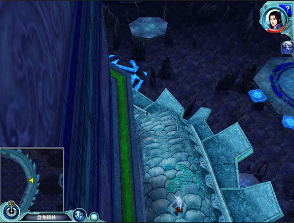 从这个角度来看同时可以很清晰的看到前面的龙道上有一个角度逼仄的坡,而浮版抵达的位置是龙道上这个陡坡的下方。我们知道盘龙镇柱后来一直在绕着柱子的台子上走,龙道被这些陡坡隔成一节一节的了。只是有些浮版从台子通向龙道偶尔走一截或是只有打怪用。