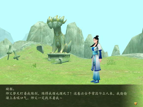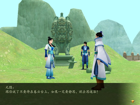 文字版————————————————————————————————————————璇枢:师父整天盯着我练剑,练得我烦也烦死了!这卷云台平常没什么人来,我偷偷溜上来喘口气,师父一定找不着我~元隐:璇枢!我让你在剑舞坪习剑,你怎么跑这里来偷懒?!璇枢:啊!师父!我……我练剑时有些地方想不通,所以找个地方静一静!元隐:此地灵气混乱、煞气颇重,不要长时间留在这里。跟师父下去吧,有不明白的地方,为师的教你便是。璇枢:可、可我想自己静思一会!师父你先下去吧,等我想明白了就来。元隐:跟你说了不要待在卷云台上,如果一定要静思,就去思返谷!璇枢:啊?思返谷?!那我、我还是跟师父你下去,向师父讨教就行了……————————————————————————————————————————这对师徒走掉之后卷云台就空了,再来也没有人...他们是出现在卷云台的唯一两位NPC他们在这里走掉之后也没有再出现过.....天河彻底成为BG==