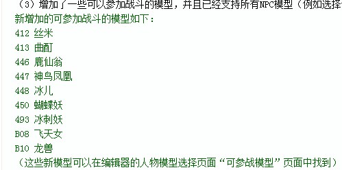 不过这个帖子不算很准确,其中给出的设计稿出处不明,不排除同人作品的可能。这里引用其秋天修改器的截图这是可参战模型列出,是不是有很多不熟悉的名字呢XD,丝米曲酊冰儿蝴蝶妖冰刺妖都是说明里指明在居巢居住的妖。他们作为可参战模型,按仙盟那贴引用的文字,这些NPC都是存在战斗动作设计的,他们原来其实不只是NPC而很有可能是小怪。